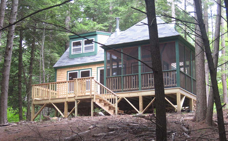 A young family with extensive property including lake frontage wanted a getaway that would tuck in to the woods near the waters’ edge. They requested a simple place to change clothes, spend the night, store boating and swimming gear and host visitors and while off-grid and low maintenance.
