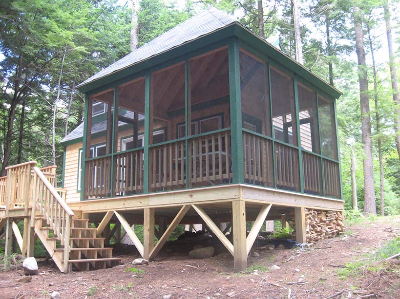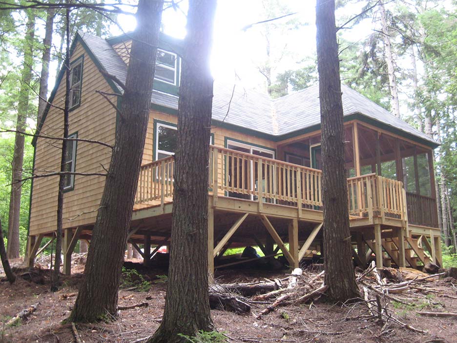 A young family with extensive property including lake frontage wanted a getaway that would tuck in to the woods near the waters’ edge. They requested a simple place to change clothes, spend the night, store boating and swimming gear and host visitors and while off-grid and low maintenance.
